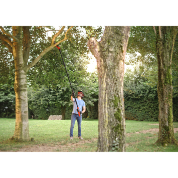 Super handig voor hoge takken, mist wel wat kracht, en je moet wel ruimte rondom je te zagen tak hebben, evenwicht wat minder dus best zwaar