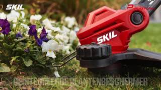 De 20V Max (18 V) SKIL 0240 is een krachtige accugrastrimmer met een werkbreedte van 30 cm voor moeiteloos trimmen en randen snijden. Door de automatische draadtoevoer hoeft de draad niet meer met de hand te worden toegevoerd en dit maakt het mogelijk om buitensporige grasgroei dichtbij muren, hekken en bloembedden zonder onderbrekingen te trimmen of gewoon de randen van uw gazon bij te werken. De trimmerkop kan eenvoudig in verschillende standen worden gedraaid, wat praktisch is bij het werken op moeilijk bereikbare plekken. U kunt ook gemakkelijk wisselen tussen randen snijden en trimmen dankzij de verticale randsnijknop. Om zo comfortabel mogelijk te werken heeft deze accugrastrimmer een verstelbare telescoopsteel evenals een verstelbare voorhandgreep, zodat elke gebruiker de juiste werkhouding kan vinden. Bovendien kan dankzij de plantbeschermer heel nauwkeurig worden getrimd, zodat men zich over het beschadigen van planten en bloemen geen zorgen hoeft te maken. Dankzij het exclusieve Easy Storage-ontwerp van SKIL neemt dit gereedschap na gebruik bijna geen ruimte in beslag. De SKIL 0240 CA wordt geleverd met een draadspoelsysteem en een Easy Storage-haak. De accu wordt niet meegeleverd.