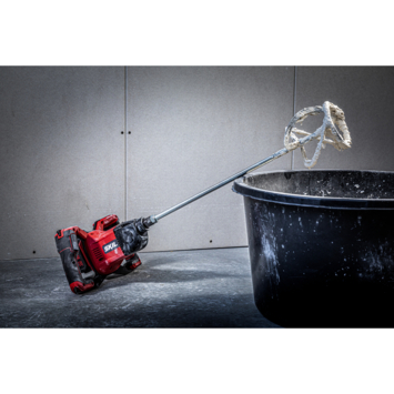 - Inclusief aluminium tandwielbehuizing en M14 gereedschapsaansluiting; geleverd met universele mengstaaf van 120 mm.