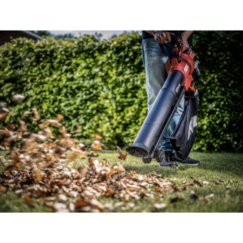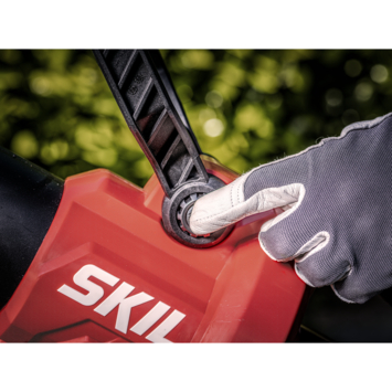 De „20V Max” 0350 is een krachtige bladblazer/-zuiger en onderdeel van het „brushless XP” assortiment van SKIL. „XP” gereedschappen leveren uitzonderlijke prestaties en duurzaamheid dankzij hun uitstekende technische specificaties en geavanceerde digitale borstelloze motoren. Onze borstelloze motor is sneller, krachtiger en heeft een 10 keer langere levensduur dan een gebruikelijke motor met koolborstels. Net als alle andere SKIL „20V Max” accugereedschappen wordt dit model aangedreven door de toonaangevende geavanceerde PWRCORE 20™ accu- en opladertechnologie. Deze accubladblazer/-zuiger biedt zelfs de prestaties van „40V Max” met behulp van twee „20V Max” accu's. Borstelloze SKIL 0350 biedt optimale veelzijdigheid met de 3-in-1 functie: blazer, zuiger en versnipperaar. Met een schakelaar en zonder gereedschap kunt u de blazer direct veranderen in een zuiger en omgekeerd. Dit gereedschap is uitgerust met een krachtige axiale ventilator die een indrukwekkende maximale luchtsnelheid van 250 km/h en een hoog luchtvolume van 720 m3/h produceert. U kunt de snelheid voor een optimale werking regelen. Tuinafval wordt dankzij de geïntegreerde versnipperfunctie in een verhouding van 11:1 verkleind, voor compact en praktisch afvoeren. Met de grote opvangzak van 45 liter kunt u langer doorwerken zonder dat de zak vaak leeggemaakt hoeft te worden. Om eenvoudig door uw tuin te kunnen manoeuvreren is deze bladblazer/-zuiger voorzien van een praktisch ondersteunend wiel. Dankzij het exclusieve „EASY STORAGE”-ontwerp van SKIL neemt dit gereedschap na gebruik bijna geen ruimte in beslag. SKIL 0350 CA wordt geleverd met een schouderriem, opvangzak voor bladeren en een EASY STORAGE-haak. De accu en oplader zijn niet inbegrepen.