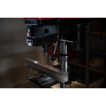 De SKIL 1360 is een kolomboormachine met een krachtige borstelloze inductiemotor van 550 W. Het gereedschap biedt een grote precisie en is, dankzij de 5 snelheden, uitermate geschikt voor het boren van schone gaten in verschillende materialen. Een kruislijnlaser geeft duidelijk de boorlocatie weer, zodat u het werkstuk precies op de juiste plek kunt positioneren. Het LED-licht zorgt voor een optimale zichtbaarheid, ook in slecht verlichte ruimtes. Een werkstuk bevestigen is een makkie met de verstelbare werktafel waar ook nog een extra bankschroef bij zit. De werktafel kan van 0° tot 45° worden gekanteld, wat betekent dat de boorhoeken ook aan te passen zijn. De SKIL 1360 heeft daarnaast een instelbare diepteaanslag voor een vooraf gedefinieerde en constante boordiepte. En het gereedschap heeft een stofdichte aan/uit-schakelaar, nog een groot pluspunt voor houtbewerkingsklussen. De SKIL 1360 AA wordt geleverd met een bankschroef en een boorkopsleutel.