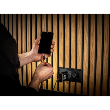 Multifunctionele 45W Power Delivery (PD) oplader laadt zowel PWRASSIST™ USB-C compatibele SKIL accu's als mobiele apparaten op.