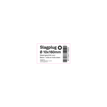 De Slagplug nylon Ø 10x160mm met schroef RVS is geschikt voor toepassing op verschillende soorten materialen zoals beton, wandverbinding en metaal. Nagelpluggen zijn zeer geschikt voor het monteren van houten regelwerk (zoals plinten). De werkwijze is anders dan bij een gewone plug en daarom is deze plug ook wel bekend als spijkerplug of nagelplug. Je slaat de plug namelijk met een hamer in het boorgat. Gebruik voor het boren van het gat een boor met een doorsnede van 10mm. De plug is 160mm lang. Bijpassende schroeven zijn 165mm lang en hebben een doorsnede van Ø 7 mm. Een verpakking bevat 1 slagpluggen.