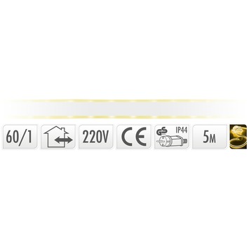 Slangverlichting voor buiten (kan natuurlijk ook voor binnen) met een lengte van 5 meter met een IP 44 stekker.