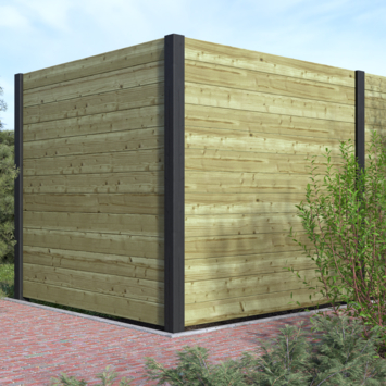 De Sleufpaal hoekpaal grenen gespoten zwart is ontworpen voor het plaatsen van een stevige schutting. Met een lengte van 270 cm en een netto kopmaat van 8,8 x 8,8 cm is deze hoekpaal ideaal om tuinplanken tussen de sleuven te plaatsen. Grenen, een harsrijke en sterke naaldhoutsoort, gaat zonder behandeling 5-10 jaar mee. Om de levensduur te verlengen, is het hout vacuümdruk geïmpregneerd met Tanalith E, waardoor het hout bestand is tegen schimmels en tot 15 jaar meegaat. De paal is eenvoudig op maat te zagen en kan direct in de grond geplaatst worden. Vergeet niet om gezaagde kanten te behandelen om houtrot te voorkomen.