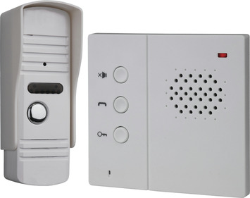 Deze set bestaat uit een metalen beldrukker en een binnenpost. De binnenpost is voorzien van een drukknop waarmee je een elektrische deuropener zou kunnen bedienen. Dit intercom systeem is bedraad aan te sluiten. De intercom wordt beveiligd door een regenkap. Je kan zelf gemakkelijk het belvolume instellen. De audio intercom heeft een 3 draadse aansluiting.