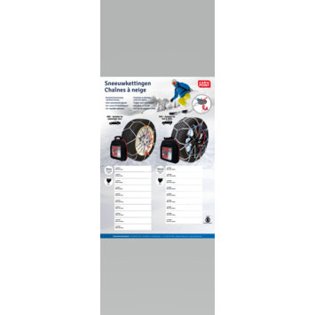 Sneeuwkettingen zijn auto specifiek. Of deze ketting geschikt is voor uw auto hangt af van merk, type, uitvoering, bouwjaar en bandenmaat van de auto. Raadpleeg de applicatielijst of deze ketting geschikt is voor uw auto. Lees voor het gebruik van sneeuwkettingen ook altijd de aanwijzingen in het instructieboekje van de auto.