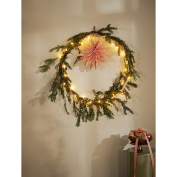 Maak jouw huis klaar voor de feestdagen met deze hangende sneeuwvlok. De papieren sneeuwvlok voor binnen heeft een feestelijke lichtroze kleur. Leuk om bijvoorbeeld ergens in je woning op te hangen of voor het raam! Combineer hem met andere hangende sterren of sneeuwvlokken voor een speels effect. De afmetingen van deze kersthanger zijn H40 xø40 cm. Daarnaast is dit artikel gemaakt van FSC®-gecertificeerd materiaal. Een mooie en betere keuze! Door middel van het touwtje kun je hem gemakkelijk ophangen.