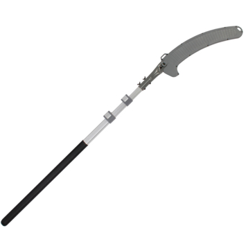 Deze snoeizaag is ideaal voor het doorzagen van hoge takken. Het gebogen blad met 3 zijdig geslepen tanden zorgt voor een krachtbesparende en gladde snede. Om te voorkomen dan de zaag uit de snede wordt getrokken zit aan beide zijden een takhaak. Hiermee kunnen de afgezaagde takken ook uit de boom gehaald worden. De snoeizaag is voorzien van een verlengbare steel tot max. 250cm.