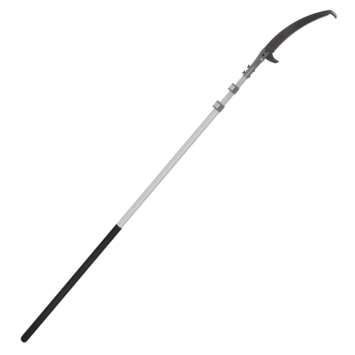 Deze snoeizaag is ideaal voor het doorzagen van hoge takken. Het gebogen blad met 3 zijdig geslepen tanden zorgt voor een krachtbesparende en gladde snede. Om te voorkomen dan de zaag uit de snede wordt getrokken zit aan beide zijden een takhaak. Hiermee kunnen de afgezaagde takken ook uit de boom gehaald worden. De snoeizaag is voorzien van een verlengbare steel tot max. 500cm.