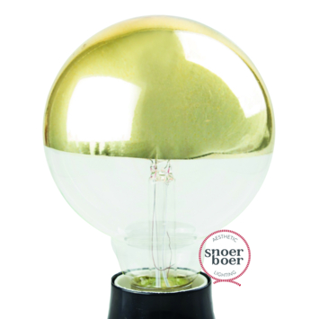 De Snoerboer LED globe kopspiegel goud is een accessoire voor je huis. De globe is 95mm groot en heeft een E27 (grote) fitting. Deze lamp is volledig dimbaar en produceert extra warm licht. De gouden kopspiegel geeft deze lichtbron een bijzondere uitstraling en zorgt er voor dat het licht weerkaatst wordt om zo een bijzonder effect te creëren. Een echte eyecatcher en daarom geschikt voor vele toepassingen in huis! De LED technologie maakt deze lamp energiezuinig en zorgt voor een egale lichtspreiding.