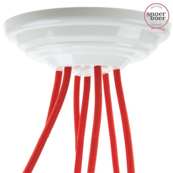 Met deze plafondkap wit 150 mm kun je een hele bundel lampen ophangen tot wel 7 lampen. Het is zeer gemakkelijk, want alles wat je nodig hebt is een boortje om het gewenste aantal gaatjes te boren. Aan de binnenkant van de kap zijn 7 (boor)puntjes te vinden.