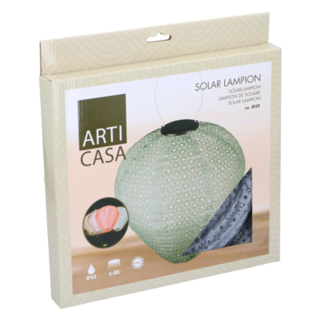 Deze lampion is een echte sfeermaker voor in je tuin. De op zonne-energie werkende lantaarn is gemaakt van kunststof waardoor hij geschikt is voor buiten. Leuk ter aankleding van een feestje. Bovenop de lampion zit een oplaadpaneel. Zorg er voor dat de lampion voldoende licht krijgt en de warm witte LED lamp in de lampion geeft een sfeervol licht. Deze lampion is verkrijgbaar in 4 kleuren.