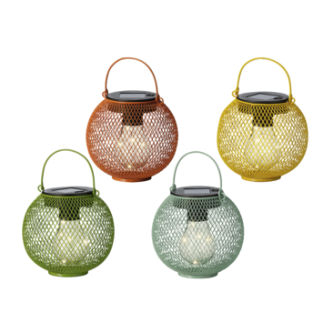 Deze leuke gekleurde lamp met micro LED is een sfeermaker voor zowel binnen als buiten. De lamp is gemaakt van metaal en verkrijgbaar in 4 verschillende kleuren; blauw, geel, oranje en groen. Maak een leuke mix van de kleuren en hang ze in de boom of aan de schutting en je hebt meteen een gezellige sfeer! De lampjes hebben een geintegreerd solar systeem die 6 uur licht opbrengst kan verzorgen.
