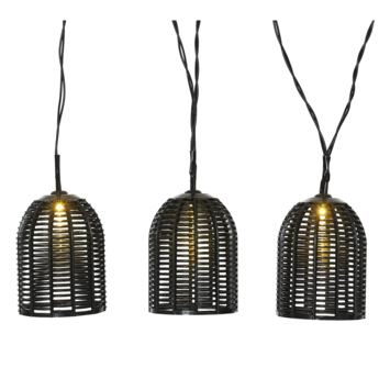 Met deze leuke zwarte lampenkapjes aan een snoer creëer je een gezellige sfeer in je tuin, op het balkon, of gewoon binnen in jouw (slaap)-kamer. De tussenruimte van de 10 lampjes bedraagt 30 cm. Hun warm witte licht maakt je (buiten)ruimte direct sfeervol.