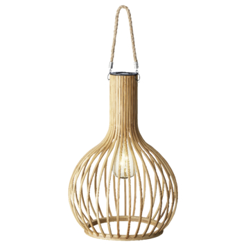 Deze lantaarn is dé eyecatcher voor op jou buitentafel of hang hem in de boom en hij zal direct voor sfeer zorgen. De lantaarn is gemaakt van bamboe De bamboe lantaarn is voorzien van een solar paneel die gedurende de dag zal opladen, zodra het donkerder wordt zal de lantaarn tot 6 uur branden. De LED lantaarn is voorzien van warm wit licht.