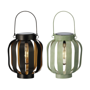 Solar tuinlantaarn metaal in zwart en groen, per stuk.
