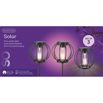 Met deze solar tuinset kun je direct jouw tuin een fijne sfeer geven. De set bestaat uit twee spiezen en een lantaarn. Allen zijn voorzien van een dag/nacht sensor dus gaan branden zodra het begint te schemeren. Ze hebben een brandtijd van 6 uur dus je kunt er 's avonds lang plezier van hebben!