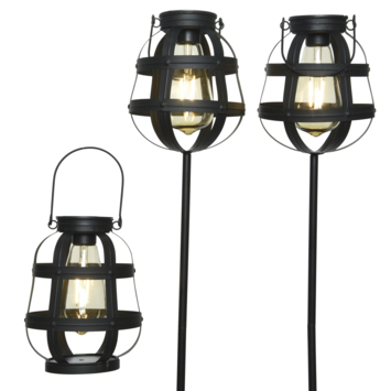 Met deze solar tuinset kun je direct jou tuin een fijne sfeer geven. De set bestaat uit twee spiezen en een lantaarn. Allen zijn voorzien van een dag/nacht sensor dus gaan branden zodra het begint te schemeren. Ze hebben een brandtijd van 6 uur dus je kunt er 's avonds lang plezier van hebben!