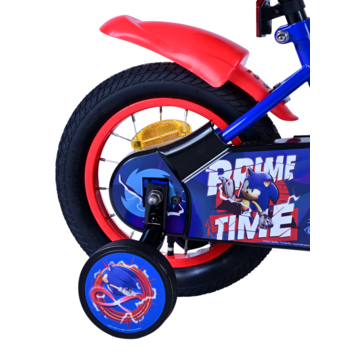 Leren fietsen wordt een avontuur met de Sonic Prime 12 inch kinderfiets in blauw en rood! Veiligheid staat voorop met een handrem, terugtraprem en een gesloten kettingkast. De afneembare zijwieltjes helpen je kind snel en zelfverzekerd leren fietsen.