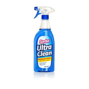 De Sorbo Ultra Clean keuken- en interieurreiniger 750 ml is een krachtige ontvetter met een sterk reinigende werking. Je kunt de reiniger in sprayvorm direct gebruiken en is geschikt voor de keuken en het interieur. De spray werkt tegen allerlei soorten vlekken en vuil en laat een beschermlaag achter op het oppervlak, wat ervoor zorgt dat het oppervlak extra lang schoon blijft. De spray werkt snel en hygiënisch en bevat 750 milliliter reinigingsmiddel.