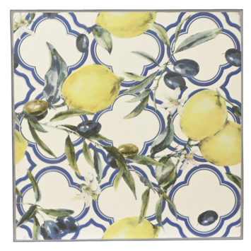 Deze bistrotafel tovert je buitenruimte in één keer om tot een kleurrijke plek. De Sorrento bistrotafel heeft een tafelblad met limoen mozaïek van steen en rust op een stevig blauw metalen frame. Ideaal voor kleinere tuinen of balkons dankzij het compacte formaat van 58 x 58 x 76 cm. Het blad is 2 cm dik en de ruimte onder de tafel is 56 cm, waardoor je er makkelijk een stoel onder schuift. De levendige kleuren en het stevige ontwerp maken deze tafel tot een praktische én stijlvolle keuze. Maak je zithoek compleet met de bijpassende stoelen uit dezelfde serie.