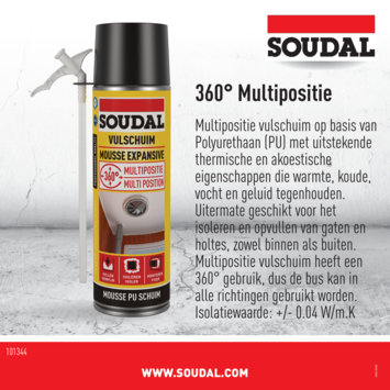 Het Soudal pur bouwschuim all positions 510 ml zorgt ervoor dat gaten en spleten gemakkelijk, snel en luchtdicht dichtgemaakt worden. Het voordeel van de bouwschuim is dat het in alle posities is te gebruiken. Zo kan je goed met de vorm van de afdichting meewerken.