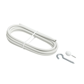 Het spandraad spriraal is ideaal voor het ophangen van lichte gordijnen zoals vitrage. Het draad kan zeer eenvoudig bevestigd worden met de bijpaddende ophang haken of steuntjes. Het spandraad is er in 3 lengtes te krijgen, namelijk 500 cm, 250 cm en 150 cm. Dit spandraad heeft een lengte van 150 cm en is uitgevoerd in de kleur wit. Het draad is eenvoudig op maat te maken met een kniptang.