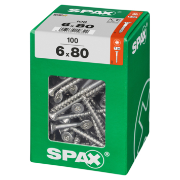 SPAX Universele schroef, Verzonken kop T-STAR plus T30 6x80 Deeldraad Staal WIROX 100ST