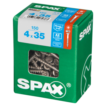 SPAX Roestvaststalen schroef, 4 x 35 mm, 150 stuks, Deeldraad, Verzonken kop, T-STAR plus T20, 4CUT, Roestvast staal A2