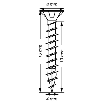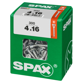 Spax schroef T-STAR plus WIROX 4x16 L (300 stuks) is een universele schroef geschikt voor vele toepassingen, zoals het bevestigen van scharnieren en beslag. De voordelen van de Spax schroef T-STAR? Voorboren is niet nodig (afhankelijk van de houtsoort) en het boren zelf vergt weinig krachtinspanning. Daarnaast vermindert deze unieke schroef het splijten van je hout, ook aan de uiteinden. Deze schroef uit gehard staal met een verzonken Torx kop heeft een diameter van 4 millimeter en is 16 millimeter lang. Tip: verkrijgbaar in verschillende maten en hoeveelheden.