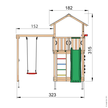 Jungle Gym speeltoestellen zijn zo ontworpen dat ze heel eenvoudig zelf te monteren zijn. Met zelftappende, gegalvaniseerde schroeven en bouten. Voor een perfecte pasvorm is het hout niet voorgeboord, want hout reageert van nature op temperatuur en vochtigheid. Inclusief stap-voor-stap geïllustreerde handleiding, afwerkdoppen, handige schroefbits en boortjes set.