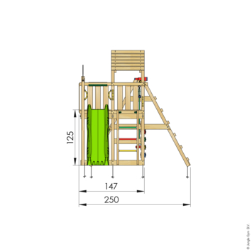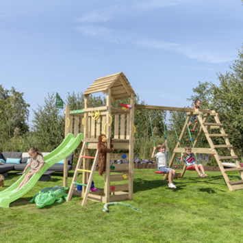 Jungle Gym speeltoestellen zijn de droom van elk kind van 3-10 jaar oud. Deze speeltuigen zijn voorzien van 2 schommelzitjes, een groot klimrek met een klimnet, een lange glijbaan, een zandbak, een klimwand met grote grepen, een trapje, een telescoop en een stuur. Al deze speelelementen worden ontworpen en geproduceerd in Nederland en staan bekend om hun topkwaliteit sinds de afgelopen 30 jaar. De veiligheid van uw kinderen staat bij ons altijd op de eerste plaats. Onze producten worden uitgebreid getest en voldoen aan de meest actuele Europese veiligheidsvoorschriften EN 71. Daarnaast zijn onze speeltuigen 100% compleet. Aan alles is gedacht en standaard meegeleverd om u tijd en moeite te besparen. De gebruikte materialen zijn van uitstekende kwaliteit en zijn weerbestendig, praktisch onderhoudsvrij en veilig voor kinderen, zonder toxische stoffen of allergenen.
