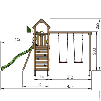 Speeltoestel Jungle Gym Safari met groene glijbaan en dubbele schommels van douglashout