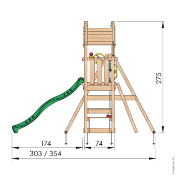 Voor onvergetelijke speelervaringen in eigen tuin. Met schommelzitje, trapeze, picknicktafeltje, lange glijbaan, zandbak, klimwand met grote klimgrepen, trapje, telescoop en stuur. Voor kids 3-10 jaar. Jungle Gym speeltoestellen worden al 30 jaar ontworpen en geproduceerd in Nederland en staan bekend om hun topkwaliteit. Veiligheid staat altijd voorop, alle producten worden uitgebreid getest en voldoen aan de meest actuele Europese veiligheidsvoorschriften EN 71. Daarnaast zijn ze 100% compleet, aan alles is gedacht en standaard meegeleverd. De materialen zijn van hoge kwaliteit, weerbestendig, praktisch onderhoudsvrij en kindveilig zonder toxische stoffen/allergenen.