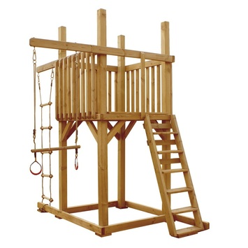 Het speeltoestel Kapitein is een speeltoestel die je helemaal naar eigen wens kunt samenstellen. De basisset bestaat uit een toren met daaraan een trap en een touwladder. Deze set is opgebouwd uit stevige houten palen van ca. 88x88 millimeter en combinatie met balken van ca. 45x95 millimeter en planken van 28 millimeter dikte. Zo heb je jarenlang plezier van dit speeltoestel. Je kunt het speeltoestel uitbreiden met bijvoorbeeld een zandbak, dak of glijbaan. Het speeltoestel wordt geleverd als een op maat gezaagd pakket inclusief bevestigingsmateriaal en grondankers. Dit speeltoestel voldoet aan het CE keurmerk en wordt geleverd exclusief trapeze.