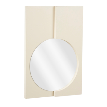 Deze spiegel combineert strakke lijnen met een speels geometrisch ontwerp. De crèmekleurige omlijsting en ronde spiegel zorgen voor een stijlvol contrast. Mooi als blikvanger in de hal, slaapkamer of boven een sidetable. Door het compacte formaat past hij ook perfect in kleinere ruimtes. De afmetingen zijn L32,5 x B4,5 x H48 cm.