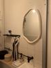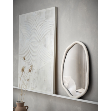 Ovale spiegel 'Dominique'. Prachtig aan de muur door zijn mooie abstracte vorm en dikke rand.