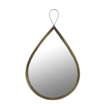 De druppelvormige spiegel uit de collectie van Mica Decorations is stoer en doet waar die voor bedoelt is, het mooiste spiegelbeeld weergeven. De spiegel geeft een ruimtelijk effect en is een leuke afwisseling tussen fotolijstjes aan de wand.