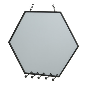 Deze hexagon spiegel ziet er sierlijk en stijlvol uit. Deze wandspiegel beschikt over een ketting aan de bovenzijde, zodat de spiegel gemakkelijk aan de wand bevestigd kan worden. Ook beschikbaar in een grotere maat.