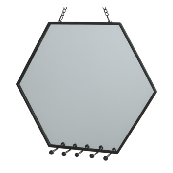 Deze hexagon spiegel ziet er sierlijk en stijlvol uit. Deze wandspiegel beschikt over een ketting aan de bovenzijde, zodat de spiegel gemakkelijk aan de wand bevestigd kan worden. Ook beschikbaar in een kleinere maat.