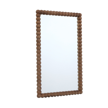 Mooie grote spiegel, mooie natuurlijke hout kleur met bollen rand.