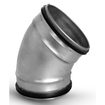 Spiraalbuis 45° bocht Ø125mm ten behoeve van gegalvaniseerde buis. Deze bocht heeft rubberen manchetten voor een luchtdichte afsluiting (luchtdichtheidsklasse D volgens EN12237). De koppelstukken zijn waar mogelijk gestanst.