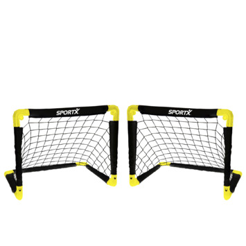 Met deze Sportx voetbaldoeltjes (set van 2 doeltjes) kan je een lekker balletje trappen. Deze superhandige opvouwbare doeltjes, afmeting 55x44x44 cm, kun je makkelijk meenemen. Je vouwt de doeltjes simpel uit en zet ze met de 4 bijgeleverde tentharingen vast. Adviesleeftijd vanaf 5 jaar.
