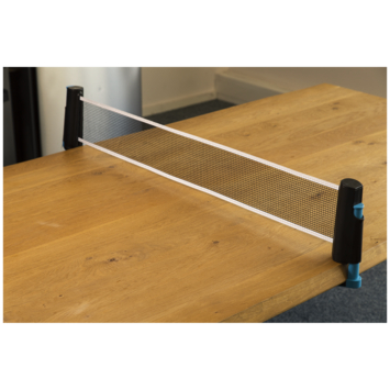 SportX tafeltennisnet, dat je gemakkelijk uit kunt schuiven en op een tafel kunt klemmen. Zo kun je overal een potje tafeltennis spelen! Nethoogte: 13 cm. Maximale breedte: 160 cm. Verpakt in full-colour doos.