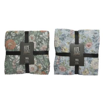 Prachtig sprei voor binnen. Ook fijn om tijdens de koudere avonden mee naar buiten te nemen. De sprei beschikt over een mooie bloemenprint en is verkrijgbaar in twee verschillende kleuren. Gemaakt van 100% polyester.