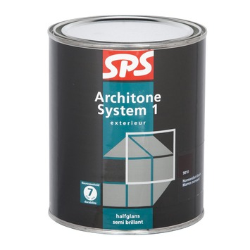 De SPS Architone 1 pot systeemverf halfglans normandisch bruin 1 l is een systeemverf, ook wel één-pot-systeem (EPS) of schakelver genaamd, geschikt voor op hout. Systeemverf is een product dat grondverf, voor- en aflak in één pot combineert. Dat maakt dat de verf eenvoudig te verwerken is. De glans is wel wat lager dan wanneer je een aflak gebruikt (met name buiten). De verf is geschikt voor gebruik buiten.