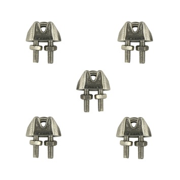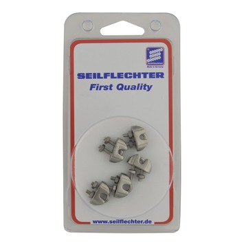 De staaldraadklemmen 3 mm 5 stuks worden geleverd in een verpakking van 5 stuks. De staaldraadklemmen zijn geschikt voor een staaldraad met een diameter van 3 millimeter en zijn gemaakt van het hoogwaardige roestvrijstaal 316 en zijn daardoor goed bestand tegen zowel zoet als zout water. Een staaldraadklem wordt gebruikt voor het maken en vastzetten van een lus in een staaldraadkabel. Geadviseerd wordt om twee enkele staaldraadklemmen te gebruikt per lus.