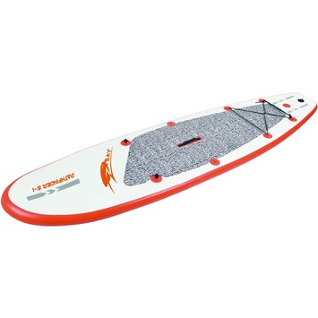 Dé nieuwe manier van watersporten met de opblaasbare Stand-up surfplank type Native 3000 Sport. Deze Stand-up surfplank is makkelijk mee te nemen door z'n compacte omvang in niet opgeblazen toestand. Afmetingen niet opgeblazen zijn 46x89x26 cm en weegt 14 kg. In opgeblazen vorm zijn de afmetingen (lxbxh): 300x76x10 cm. Het materiaal waarvan deze Stand-Up surfplank is gemaakt is gelamineerd kunststof met dubbele tussenvoering en antislip toplaag. Compleet met uitschuifbare peddel, pomp, vin, voetensteun, zitting en handige opbergtas. Max. draagvermogen 100 kg.