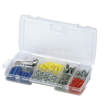 Deze Stanley assortimentsdoos heeft 11 vakken die je met de verwisselbare tussenschotjes naar eigen wens kunt indelen. Hierdoor kun je kleine pluggen maar ook bijvoorbeeld grotere bouten opbergen in de assortimentsdoos. De assortimentsdoos heeft een transparant deksel dat zorgt voor extra overzicht. De afmeting is ca. (hxbxd): 3x23x12 cm.